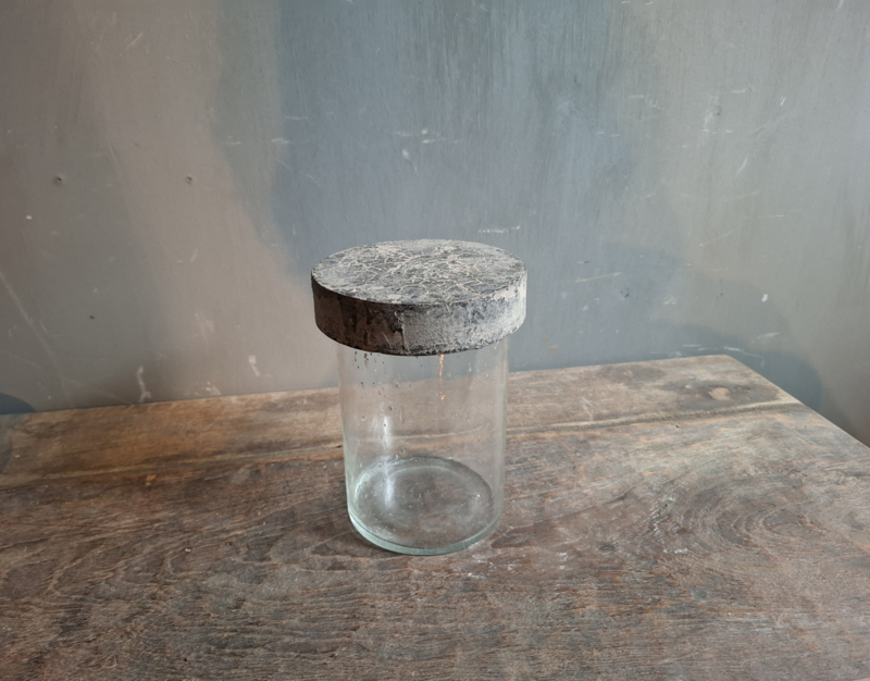 Glazen(voorraad) pot met houten deksel. H16 cm diameter deksel 12cm
